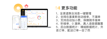 打通美团,饿了么,京东到家,抖音等上游平台及本地零售系统,实现线上线下订单可视化管理和全链路闭环,提供省时省力省心的一站式服务